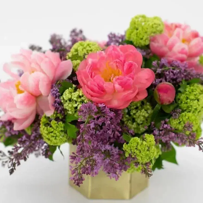 Coral Peonies, exclusive at Garden of Edith! Part of our Dutch flowers selection, this arrangement includes Coral Peonies, Lilac, and Viburnum snow balls in a 5"X5" clear cylinder. Celebrate with these sophisticated blooms. Upgrade for more stunning Peonies and enjoy our floral excellence. Transform any space with Peony Dreams' charm.